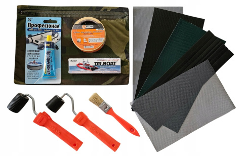 • PROFI Zestaw naprawczy do pontonu Klej PU312 + DR.BOAT + DUŻE Łaty +Siatka